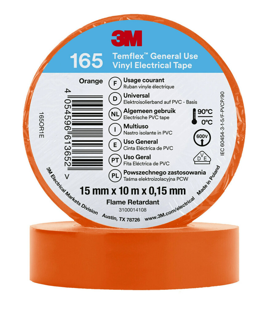 | Kurzbeschreibung | 3M™ Temflex™ Vinyl Electrical Tape 165, Orange, 15 mm x 10 m, 100 Rolls/Case |