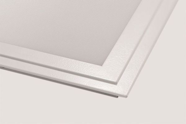 LED Panel für den flächenbündigen Deckeneinbau, Rahmen aus Aluminium, Farbe weiß, RAL 9003, mit opaler Abdeckung geeignet für den Einsatz in Unternehmen der Lebensmittelund Getränkeindustrie, verschiedene Lichtfarben, LED Treiber – auch einstellbar und dimmbar – separat erhältlich, SNAP-IN Befestigungssatz für GK-Decken separat erhältlich.