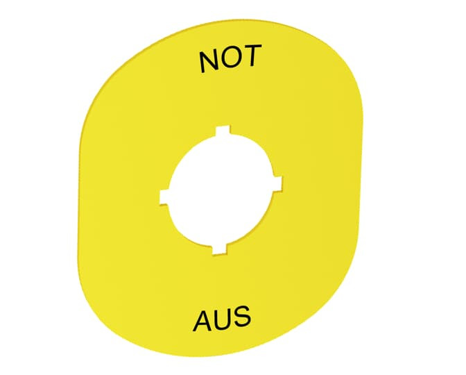 | Kurzbeschreibung | Schild Not-Aus, Kunststoff, gelb, für vertikal montierte Kunststoffgehäuse, |