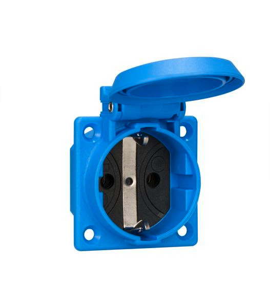 | Kurzbeschreibung | Asennettava SCHUKO-pistorasia, sininen, IP54, ruuviliitännällinen |