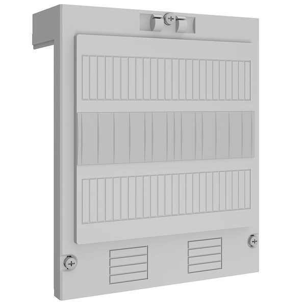 Zubehör bestehend aus: Abdeckhaube eingebaut im Gehäuse für den netzseitigen Anschlussraum (NAR), für die Aufnahme auf 2 Abdeckungshaltern und der Zählertragplatte, geöffnet mit verriegelbarer Abdeckstreifen