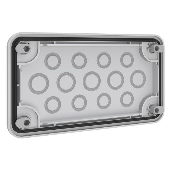 | Kurzbeschreibung | Leitungseinführungsplatte 5xM20/8xM16 von außen verriegelbar, für R-Gehäuse |