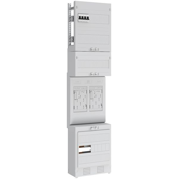 Zählerplatz bestehendAus: 2xeHZ-Kassette mit 5-poliger Hauptleitungsabzweigklemme,Sammelschienensystem 5-polig,5xAnschlussklemmen 16mm²,kein Zählerreserveplatz,für Überschusseinspeisung