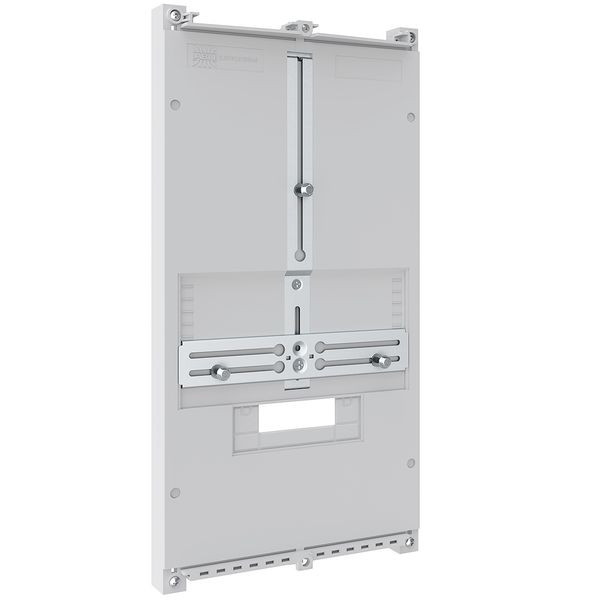 Modulbausatz in tiefer Bauform, 3 Punkt Zählertragplatte bestehend aus: Zählertragplatte mit Leitungsbefestigungen auf der Rückseite, zur Kombination mit 3 Punkthauben, Feldbreite 1 / Bauhöhe 3