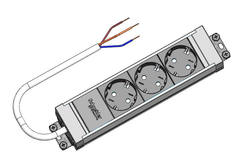| Kurzbeschreibung | Schutzkontaktsteckdose EURO 3-fach 45° Media mit 2m Ltg, H05VV-F 3G1,5mm² und Montagezubehör |