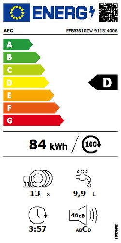 | Energieeffizienzklasse Geschirrspüler (2019/2017/EU) | D |
