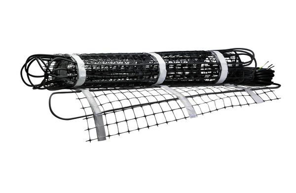 Heizmatte für den Einsatz als Fußbodenspeicherheizung, Teilspeicherheizung und Direktheizung in trockenen und feuchten Räumen. Mäanderförmig auf Kunststoff-Trägergewebe verlegte Heizleitung aus hochwertiger Widerstandslegierung gemäß VDE 0253. Isolierhülle aus Silikonkautschuk und Aderumhüllung aus PVC. Verzinntes Kupfergeflecht zum Anschluss an FI-Schutzschaltung. Außenmantelisolierung aus PVC. Elektrische Verbindung Heizleiter/Kaltleiter mit Aderendhülse galvanisch verzinnt, mit wasserdichter Anschlussmuffe und Kaltleiteranschluss 4 m lang aus verzinntem Kupferdraht mit PVC - Isolierung.