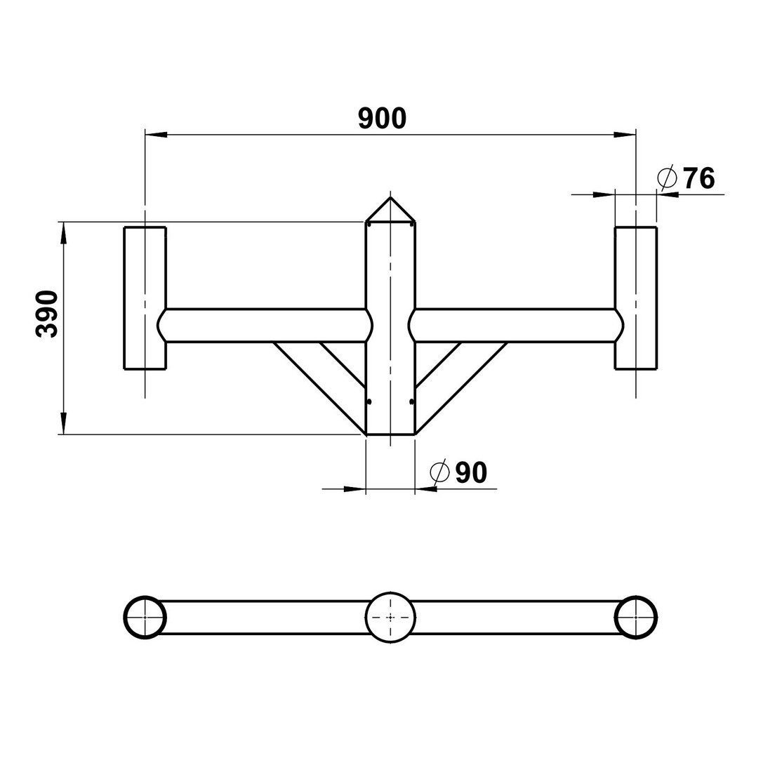 für 2 Mastaufsatzleuchten mit Mastzopf 76 mm. aus verzinktem Stahl für Mastzopf - DM 76 mm, schwarz