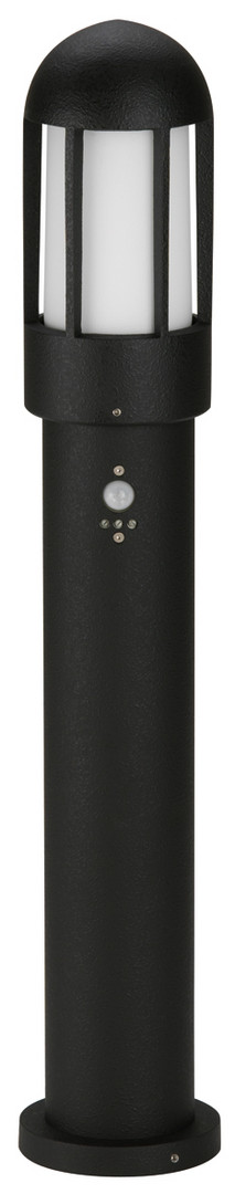Albert-Pollerleuchte 662002 - mit Bewegungsmelder - aus korrosionsbeständigem Aluminiumguß mit opalem Glas. Eingerichtet für 1 x A60 75W, Fassung E 27. Anschlussfertig zum aufschrauben auf ein Fundament oder auf den Erdeinbausockel Typ Nr. 690010.Farbe: schwarz Schutzart IP 44 - Schutzklasse : d 135 x d 150 x 835 mm