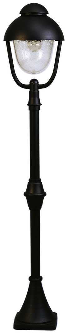 aus korrosionsbeständigem Aluminiumguß mit Blasenglas klar. Eingerichtet für 1 x A60 75W, Fassung E 27. Anschlussfertig zum aufschrauben auf ein Fundament oder auf den Erdeinbausockel Typ Nr. 690011.Farbe: schwarz Schutzart IP 44 - Schutzklasse : d 250 x 1350 mm