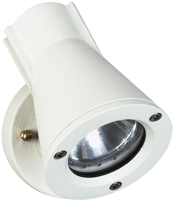 dreh- und schwenkbar, mit Montageplatte, aus korrosionsbeständigem Aluminiumguß und Borosilikatglas klar. Eingerichtet für 1 x PAR 20 50 Watt, Fassung E27.Farbe: weiß Schutzart IP 55 - Schutzklasse d 100 x 170 x 135 mm