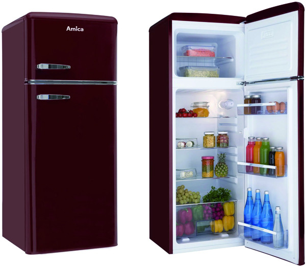 mechanische Steuerung, Kühlteil: 3 höhenverstellbare Ablagen aus Sicherheitsglas, 1 Obst- und Gemüseschublade mit Glasabdeckung, Gefrierteil: manuelle Abtauung, 1 Ablagerost, Türanschlag rechts, Retro-Design