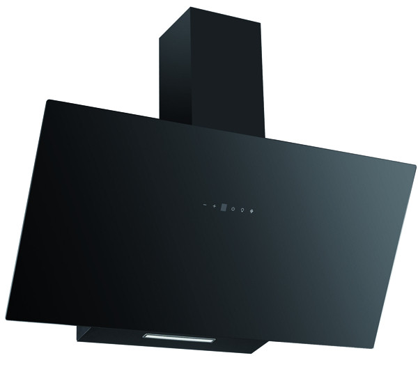 Kaminhaube, 90 cm, schwarzer Glasschirm, Farbe Kaminschacht: Schwarz, SensorTouch, HoodConnect Pro, Lichtwärme 6500 K, bürstenloser Motor (BLDC), Abluft-/Umluftbetrieb, 4 Leistungsstufen 327-630 m³/h, Elektronische Filtersättigungsanzeige, max. 15 Min. Nachlaufautomatik, Beleuchtung: 1 x LED-Stripe / 4,0 W, 1 Aluminium-TEX- Fettfilter