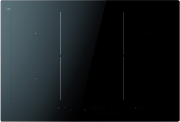 Autarkes Induktionskochfeld, 77 cm, rahmenlos, flächenbündig einbaubar, HoodConnect Pro Funktion, Slider Sensorsteuerung, vorne, DirectTouch, 2 Bridge-Zonen, AutoBridge, automatische Zonenaktivierung Hob'n Go, Pausenfunktion Stop'n'Go, Timer, Kurzzeitwecker, Digitalanzeige, 14 Leistungsstufen, 4 Gar-Temperaturstufen, Restwärmeanzeige, Topferkennung, Erkennung Topfposition, Kindersicherung
