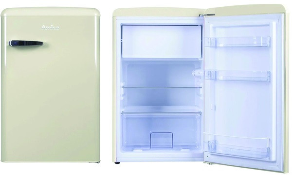 mechanische Steuerung, Kühlteil: LED-Beleuchtung, 1 höhenverstellbare Glasablage, 1 Gemüseschublade, 4-Sterne-Gefrierfach mit Klappe, Türanschlag rechts, Retro-Design