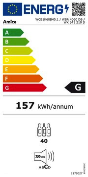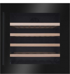 Weintemperierschrank mit Kompressortechnik - X-Type Design - Bauart: Einbau - schwarz - Stangengriff aus Metall - Max. Anzahl Bordeauxflaschen (0,75 l): 40 - Nutzinhalt total: 90 l Steuerung und Funktionen - Steuerung: elektronisch - Temperaturzonen: 1 - Temperaturbereich: 5-20 °C - Tür-Offen-Alarm, Alarm bei zu hoher Temperatur Ausstattung - Ventilator - Beleuchtung: LED - Anzahl Ablageflächen: 4 Stück - Material Ablageflächen: Holzlagerböden Buche - Vierfach Verglaste Tür (Rauchglas) mit UV-Schutz - Luftfeuchtigkeitssystem Technische Daten* - Energieeffizienzklasse: G - Energieverbrauch: pro Jahr 157 kWh - Luftschallemission: 39 dB(A)re1pW, Klasse: C - Klimaklasse: ST, 16 - 38 °C - Spannung/Frequenz: 220-240 V / 50 Hz - Gerätemaß (HxBxT): 595 x 590 x 608 mm - Türanschlag rechts, wechselbar: Ja - Gewicht netto/brutto: 33,0 kg / 37,0 kg