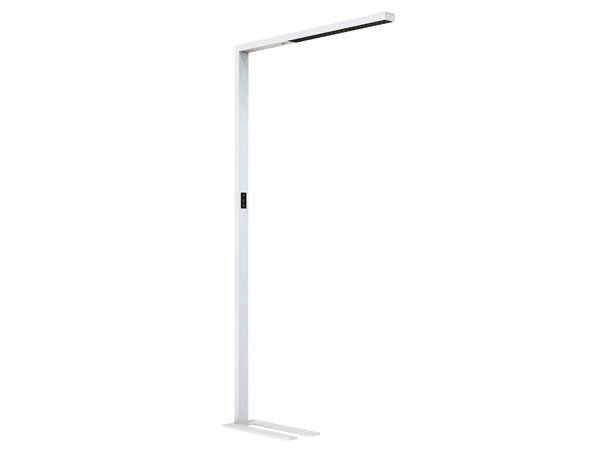 Flickerfreie LED Stehleuchte im modernen Stabdesign für anspruchsvolle Bildschirmarbeitsplätze. Gehäuse aus Aluminiumprofil, pulverbeschichtet. Sehr hohe Blendreduzierung durch Microreflektoren und Anti-Blend Abdeckung, UGR < 6. Integrierter Bewegungsmelder und Tageslichtsensor. Ein/Aus Schalter, inkl. Touch-DIM Funktion. Separat steuerbare direkte und indirekte Lichtverteilung. Lichtstromrückgang nach 50.000h L80/B10. Integriertes Betriebsgerät. 5 Jahre Garantie. Max. direkte Lichtausbeute: 3.000lm 25W. Max. indirekte Lichtausbeute: 6.500lm 55W. TW nach Anfrage. Inkl. Bewegungs- und Tageslichtsensor