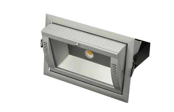 Ausschwenkbare LED Einbauleuchte für gehobene Ansprüche für Retail und Ausstellungen zur Ausleuchtung der Wandflächen. Aluminiumreflektor matt. Gehäuse aus Aluminium-Druckguss, RAL pulverbeschichtet. Hochdurchlässiges Schutzglas. Auschwenkbereich 55°. Farbtoleranz 3 SDCM. Lichtstromrückgang nach 50.000h L80/B20. Werkzeugloser Einbau durch Federtechnik. Separates, nicht dimmbares Betriebsgerät. 5 Jahre Garantie.