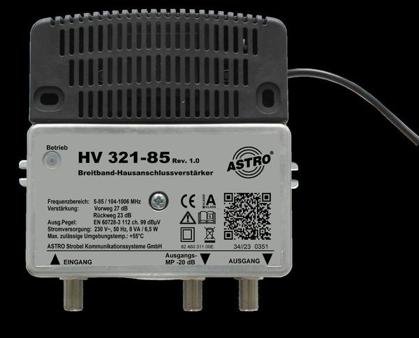 | Kurzbeschreibung | 1 GHz Breitbandverstärker 27 dB / 101 dBuV Vorweg |