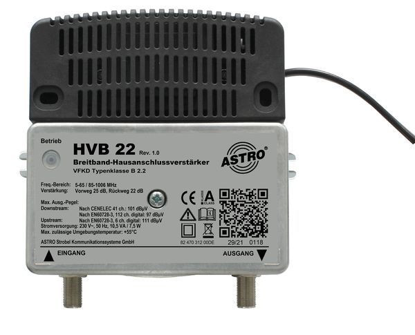 | Kurzbeschreibung | 1 GHz Breitbandverstärker 25 dB / 97 dBuV Vorweg, VFKD zertifiziert Typklasse B (2.1) |
