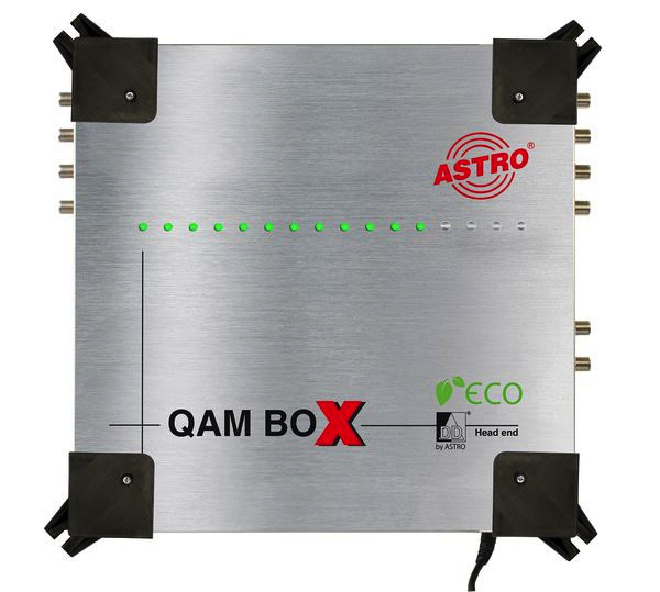 Kompaktkopfstelle, 12 x DVB-S2 in QAM, 12 frei wählbare Eingangssignale von 4 SAT-Ebenen, 12 frei wählbare QAM-Ausgangskanäle, integriertes Netzteil, NIT-Erstellung zur automatischen Programmplatzsortierung