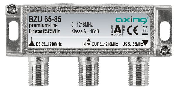 Diplexer 65/85 MHz Zum Aufteilen bzw. Zusammenführen von Rückkanal (Upstream) und Vorwärtsweg (Downstream) bei den Signalen eines Cable Modem Termination Systems (CMTS) Klasse A + 10 dB gemäß EN 50083-2