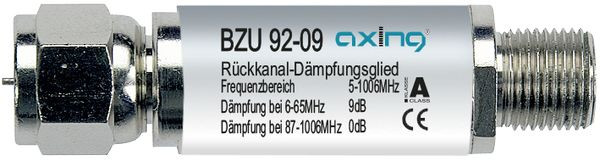 | Kurzbeschreibung | Rückkanal-Dämpfungsglied, 5-65 MHz, 9 dB, F-Buchse/F-Stecker |