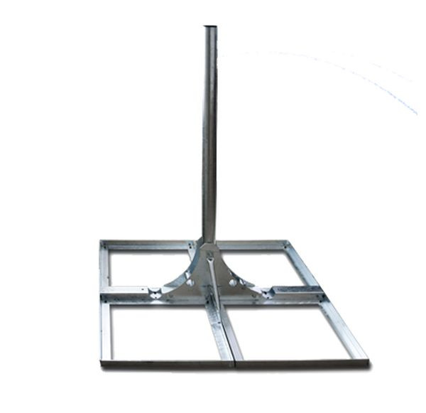 Flachdachständer Robuster Flachdach- und Terrassenständer Für die Montage von SAT-Antennen bis Ø 110 cm Wird mit 4 oder 8 Betonplatten (50 x 50 cm) beschwert (nicht im Lieferumfang enthalten) Hochqualitativer Stahl, feuerverzinkt Mastneigung 10° einstellbar Belastbar bis 1600 Nm
