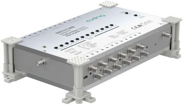 Kopfverstärker, 13 in 13, premium-line Für SPU 13xx-09S-Multischalter 12 × 950 - 2200 MHz, Verstärkung 12 - 20 dB 1 × 5 - 862 MHz, Verstärkung 15 dB Dämpfungssteller SAT/CATV 0 - 10 dB Entzerrungssteller CATV 0 - 10 dB Entzerrung SAT 8 dB Stromversorgung über ext. Netzteil SZU 99-09S (nicht im Lieferumfang enthalten) oder über die SAT-ZF-Stammleitungen USB-C-Anschluss für externes Netzteil