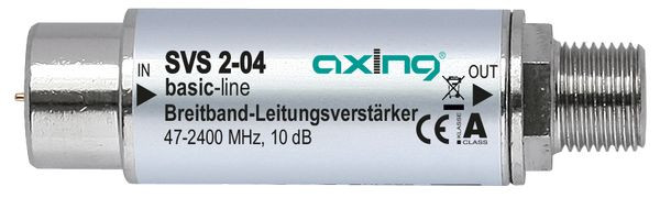 SAT-Leitungsverstärker, 47 - 2400 MHz, 10 dB Wideband-tauglich DC-Durchlass 22-kHz-tauglich DiSEqC-tauglich Einkabeltauglich Spannungsversorgung über die Koaxialleitung
