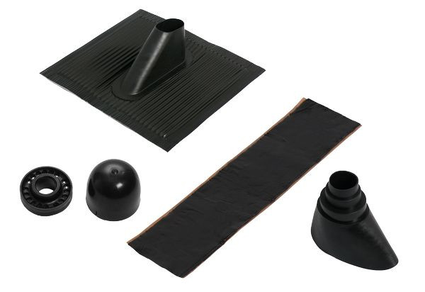 Dachsparrenhalter-Montageset Alu-Ziegel Abdichtband Abdeckkragen Mastkappe mit Kabeleinführung Max. Mastdurchmesser 50 mm