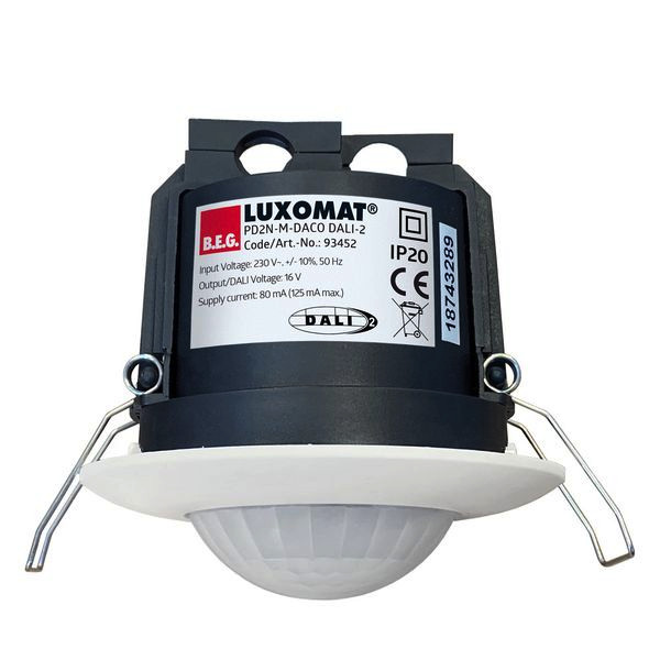 Präsenzmelder mit integriertem DALI-Applikations-Controller für eine energieeffiziente Lichtsteuerung, DALI-2 zertifiziertes Produkt, Integrierte DALI-Spannungsversorgung, DALI-Schnittstelle zur Ansteuerung digitaler, dimmbarer EVG im Broadcast-Verfahren, Manuelles Schalten und Dimmen über konventionelle Taster möglich, Bidirektionale IR-Kommunikation ermöglicht schnelle Integration in die Projektverwaltungsfunktion der B.E.G. One App, Voller Funktionsumfang ist nur mit dem BLE-IR-Adapter und einem Smartphone oder Tablet (Android, iOS) aktivierbar, Halbautomatik-, Vollautomatik-, Lichtregler- oder Anwesenheits-Betrieb einstellbar, Intelligenter Regelalgorithmus mit umfangreichen Einstellmöglichkeiten, Software ist rückwärtskompatibel zur ersten Generation (außer DSI, Doppelschloss und Korridorfunktion), Werkseinstellung 10 min Nachlaufzeit und 500 Lux Helligkeitssollwert, Inklusive vormontierter Federklemme mit Zugentlastung und Berührschutzkappe für die Deckeneinbau-Montage, Zubehör für Aufputzmontage optional erhältlich