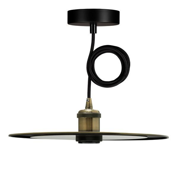 BAI Pendelleuchte Set DIY Slim Schirm Bronze Antik Fassung Retro E27 3M Textilkabel Schwarz 2x0.75mm² Deckendose Schwarz CLII Max 60W