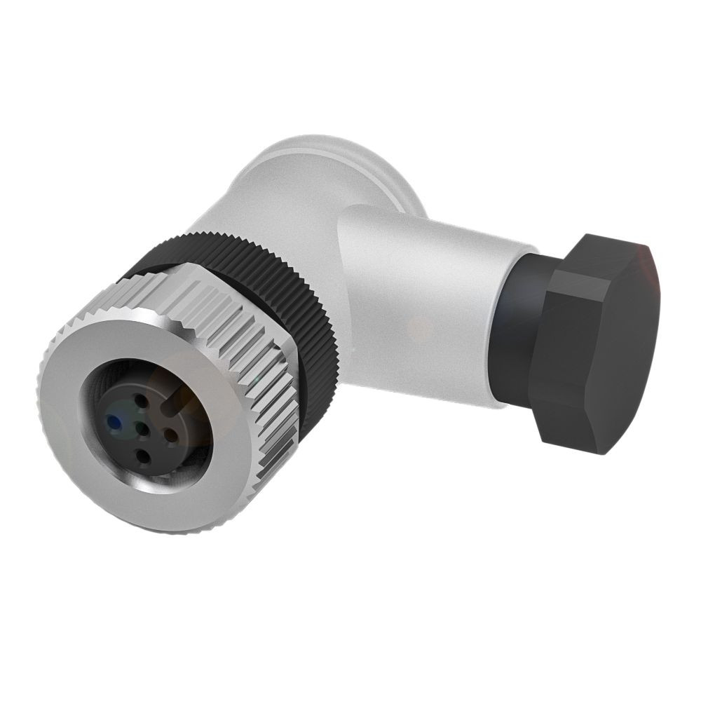 Anschluss=M12x1-Buchse, gewinkelt, 5-polig, A-codiert, Anzahl anschließbarer Kontakte=4, Anschlussquerschnitt=0.14...0.75 mm², Befestigung Litzen=Schraubklemmen, Kabeldurchmesser D=6...8 mm, Betriebsspannung Ub=30 VDC / 30 VAC, Nennstrom (40 °C)=4.0 A, Schutzart=IP67, Umgebungstemperatur=-40...85 °C, Zulassung/Konformität=EAC, WEEE
