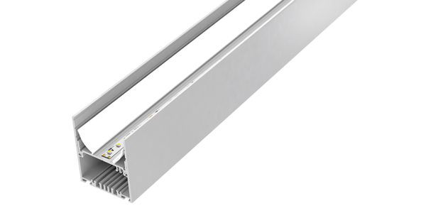 Hochwertiges Aluminium-Leuchtenprofil eloxiert, die Abdeckung ist in 3 Höhen montierbar, Abmessungen (BxH): 60x75mm