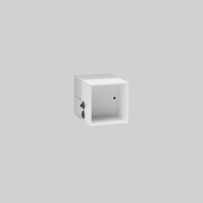 BEGA Einbaugehäuse 13540 für den Einbau von Leuchten in gedämmte Fassaden. Geeignet für Dämmstärken von 120 bis 200 mm. Einbaugehäuse aus Polystyrol. Abmessungen: 151 x 151 x 100 mm.