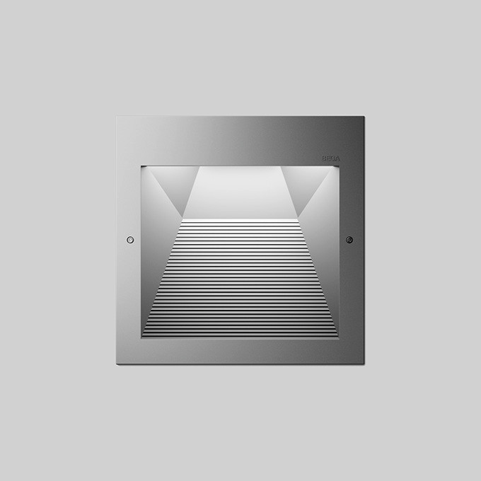 BEGA Decken- und Wandeinbauleuchte 24212AK4. Asymmetrische Lichtstärkeverteilung. BEGA Constant Optics® : Effizientes optisches System, das nahezu keinem Verschleiß unterliegt. Die Farbtemperatur der Leuchte kann wahlweise auf 3000 K (Werkseinstellung) oder 4000 K eingestellt werden. LED, 13,8 W Leuchten-Anschlussleistung, Leuchten-Lichtstrom 1230 lm im Betrieb bei Farbtemperatur 4000 K. Leuchten-Lichtstrom 1230 lm im Betrieb bei Farbtemperatur 4000 K. Farbwiedergabeindex (CRI) > 80. Mit LED-Netzteil, DALI-steuerbar , 220-240 V, 0/50-60 Hz. Mit austauschbarem BEGA LED-Modul mit einer mittleren Bemessungslebensdauer von 198.000 Betriebsstunden (L80B50 bei ta = 25 °C). 20-jährige Nachliefergarantie auf das LED-Modul und die Verschleißteile. Schutzart IP 65. Leuchte aus Aluminiumguss, Aluminium und Edelstahl Beschichtungstechnologie BEGA Tricoat® , Farbe Silber. Sicherheitsglas klar. Zwei Leitungseinführungen zur Durchverdrahtung der Netzanschlussleitung bis Ø 7-10,5 mm, max. 5 G 1,5 qmm. Abmessungen: 250 x 250 x 105 mm. Leuchte für den Einbau in eine Einbauöffnung mit den Abmessungen 230 x 230 x 110 mm oder in das Einbaugehäuse 10490 oder Einbaugehäuse für Wärmedämmverbundsysteme WDVS 13542.