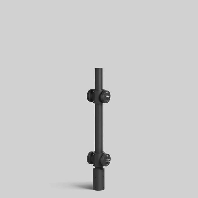 BEGA Mastaufsatz 70764 für die Montage von 4 Scheinwerfern auf einem BEGA Stahl-Lichtmast. Aluminiumguss, Aluminium und Edelstahl Beschichtungstechnologie BEGA Unidure® , Farbe Grafit. Mastzopfdurchmesser 76 mm, Einstecktiefe 150 mm. Scheinwerferbefestigung auf einem drehbaren Klemmteller mit zwei M8-Schrauben, Abstand 80 mm und G½ Gewindestutzen mit U-Scheibe und Mutter. 1 Leitungsverschraubung für Scheinwerferanschlussleitung von ø 8-11 mm. Die einzelnen Montageknoten der Scheinwerfer sind in 90°-Schritten drehbar.