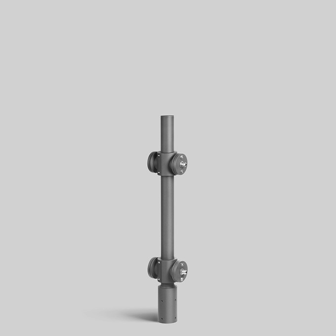 BEGA Mastaufsatz 70764A für die Montage von 4 Scheinwerfern auf einem BEGA Stahl-Lichtmast. Aluminiumguss, Aluminium und Edelstahl Beschichtungstechnologie BEGA Unidure® , Farbe Silber. Mastzopfdurchmesser 76 mm, Einstecktiefe 150 mm. Scheinwerferbefestigung auf einem drehbaren Klemmteller mit zwei M8-Schrauben, Abstand 80 mm und G½ Gewindestutzen mit U-Scheibe und Mutter. 1 Leitungsverschraubung für Scheinwerferanschlussleitung von ø 8-11 mm. Die einzelnen Montageknoten der Scheinwerfer sind in 90°-Schritten drehbar.