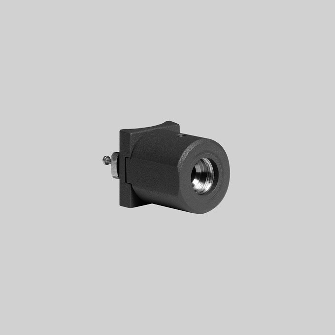 BEGA Mastadapter 71042 für den ortsfesten Betrieb eines Scheinwerfers mit Anschlussgewinde G½ ISO 228 an einem Mast. Erforderliche Einbauöffnung ø 30 mm für den Einbau in Maste ø > 60 mm. Max. Gewicht des Scheinwerfers: 6,8 kg. Aluminiumguss und Edelstahl, Farbe Grafit. Abmessungen: 40 x 40 x 40 mm.