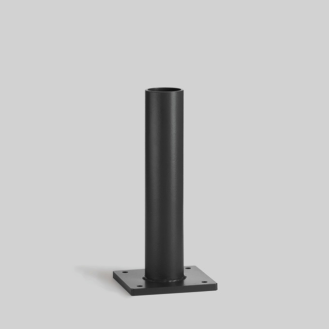 BEGA Aufschraubsockel 71243, aus feuerverzinktem Stahl, nach EN ISO 1461 zum Aufschrauben auf ein Fundament. 4 Befestigungslöcher Breite 13,5 mm.