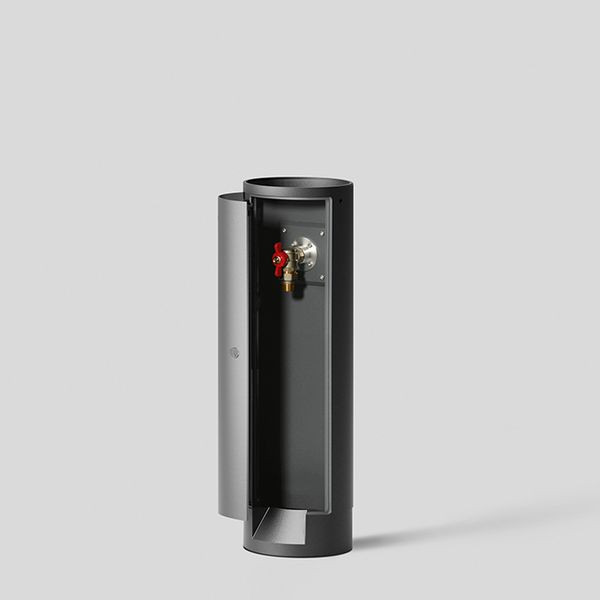 BEGA Pollerleuchtenrohr 84999 mit integriertem Wasseranschluss. Aluminium Beschichtungstechnologie BEGA Unidure® , Farbe Grafit. Für die Verwendung im modularen Systempollerleuchten-Programm. Innenliegender Winkel-Kugelhahn aus Messing. 1m Panzerschlauch mit Überwurfmutter 3/4". Mit abschließbarer Tür und BKS Sicherheitsschloss mit zwei Schlüsseln. Mit Montageplatte zum Aufschrauben auf ein Fundament oder auf das Erdstück 70896. Höhe 1150 mm. Durchmesser: 265 mm.