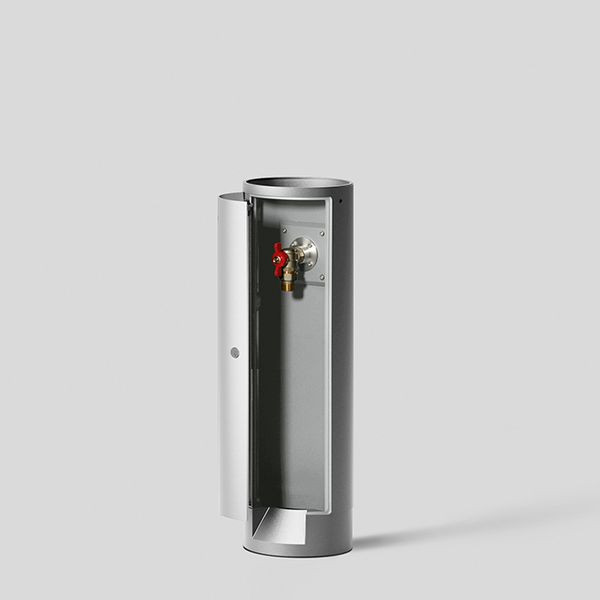BEGA Pollerleuchtenrohr 84999A mit integriertem Wasseranschluss. Aluminium Beschichtungstechnologie BEGA Unidure® , Farbe Silber. Für die Verwendung im modularen Systempollerleuchten-Programm. Innenliegender Winkel-Kugelhahn aus Messing. 1m Panzerschlauch mit Überwurfmutter 3/4". Mit abschließbarer Tür und BKS Sicherheitsschloss mit zwei Schlüsseln. Mit Montageplatte zum Aufschrauben auf ein Fundament oder auf das Erdstück 70896. Höhe 1150 mm. Durchmesser: 265 mm.