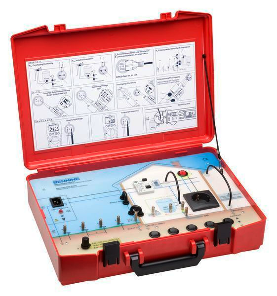 Benning DB 2. Demonstrationskoffer für die praxisorientierte Anwendung und Schulung von VDE 0100 Installationsprüfgeräten. Tragbarer Demonstrationskoffer zur Simulation von Sicherheitsprüfungen an elektrischen Anlagen gemäß DIN VDE 0100/ 0105 (für die Ausbildung und Schulung von Elektrofachkräften). Realitätsnahe Darstellung einer Niederspannungsinstallation eines Einfamilienhauses (TN-/ TT-System). Reale Komponenten wie FI-Schutzschalter, Schutzkontaktsteckdose, Ein/ Aus-Schalter mit Leuchte und Strommessschleife eines Boilers. Simulierte Komponenten mit Anschlussklemmen für Potentialausgleichsschiene, Erder, Wasserleitungen und Blitzableiter. Fehlersimulation über 5 Kippschalter einstellbar. Messung von Schutzleiter- (RPE), Isolationswiderstand (RISO), Schleifen- (ZL-PE) und Leitungsimpedanz (ZL-N). Prüfung eines FI-Schutzschalters (Auslösezeit, Auslösestrom, Berührungsspannung). Erdungswiderstandsmessung mit unterschiedlichen Messverfahren. Spannung-, Strom-, Frequenzmessung und einpolige Phasenprüfung. Spannungsversorgung über 230 V Netzanschluss. Robuste und staubdichte Gehäuseausführung. Abmessungen Länge 450 x Breite 330 x Tiefe 110 mm. Gewicht 3.5 kg