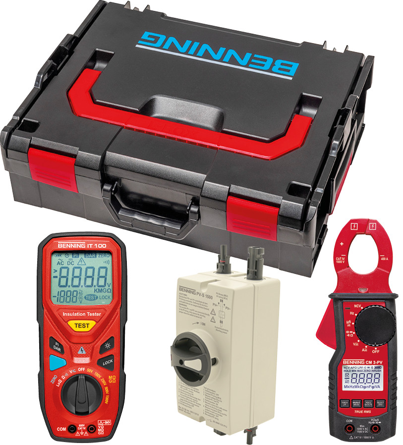 | Kurzbeschreibung | Bestehend aus Benning PV-S 1500, IT 100, CM 3-PV, L-Boxx 136, Schaumstoff |