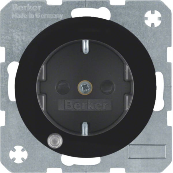 Steckdose SCHUKO mit Kontroll-LED u. erh.BS R.1/R.3 schwarz, glänzend