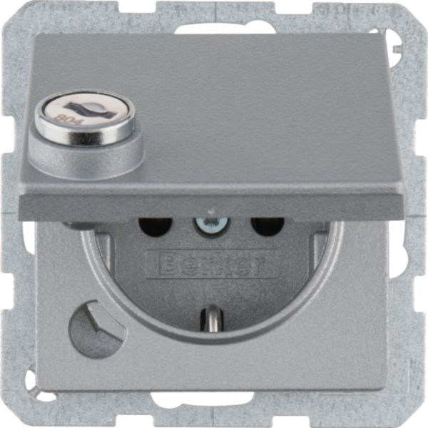 Steckdose m. Schraub-Liftklemmen,Klappd.,Schloss, Q.1,alu matt,lackiert
