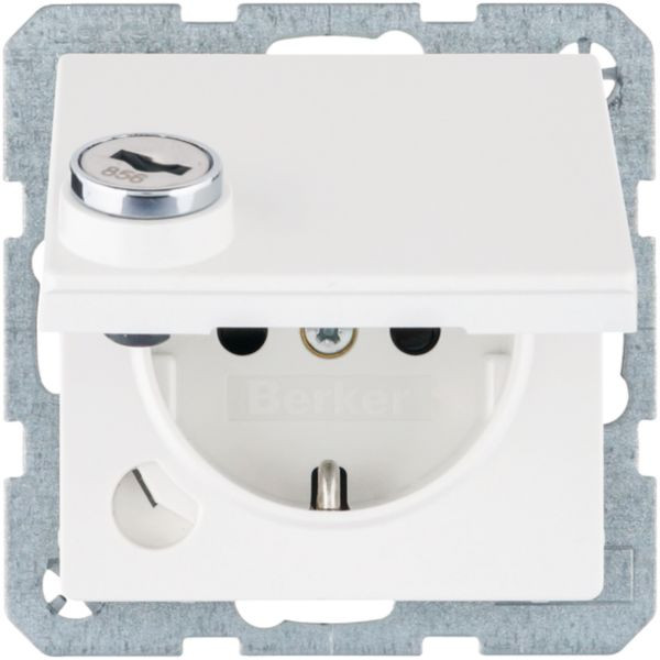 SCHUKO Steckdose m. Schraub-Liftklemmen,Klappd.,Schloss, Q.1,polarweiß, matt