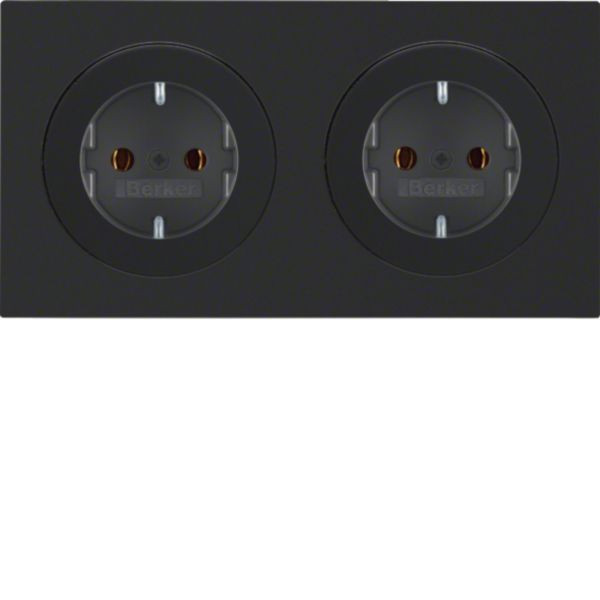 Steckdosen-Kombination SCHUKO 2fach mit Rahmen R.3 schwarz, glänzend