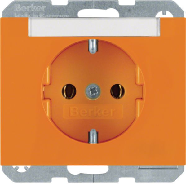 Steckdose SCHUKO mit Beschriftungsfeld K.1/K.5 orange, glänzend